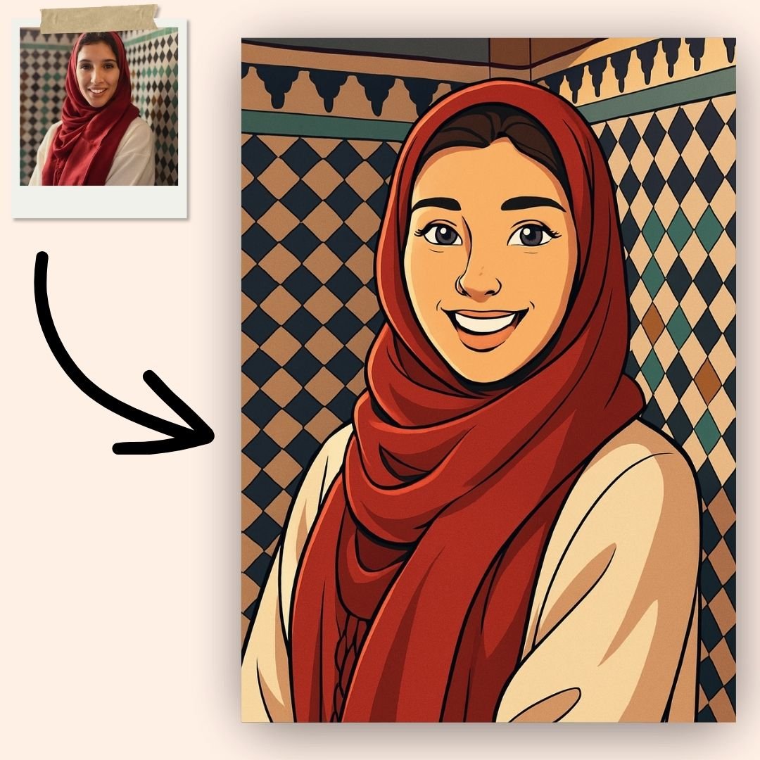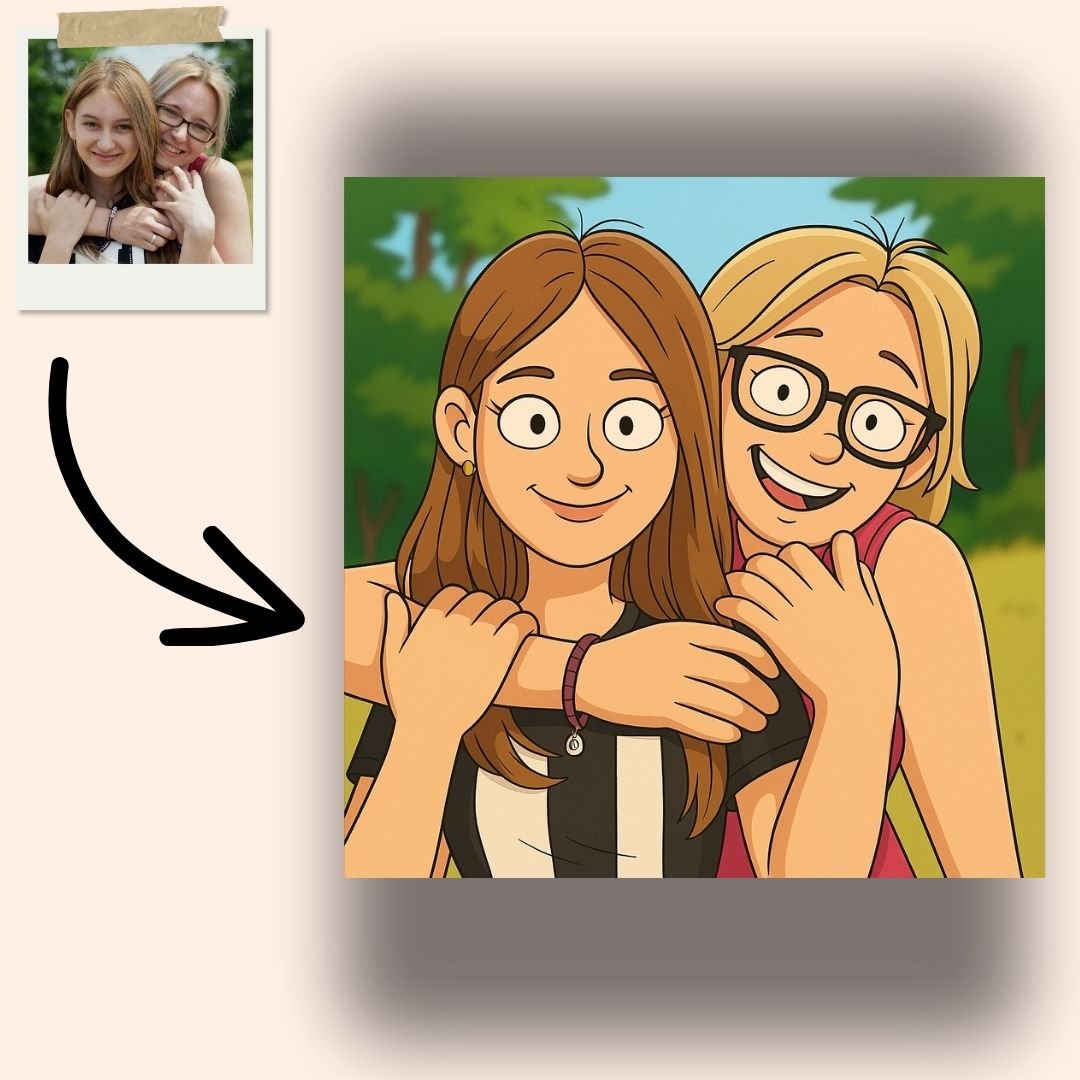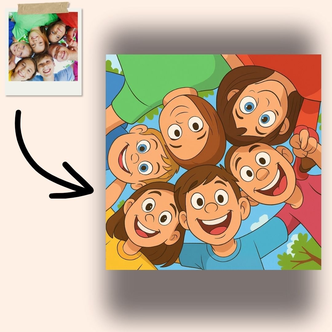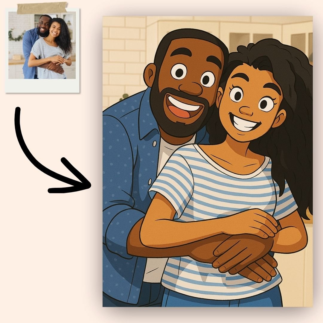 Chaque illustration est créée à partir de votre photo réelle. Nous prenons soin de préserver les expressions du visage, les sourires, les regards et les petits détails qui rendent chaque personne unique.