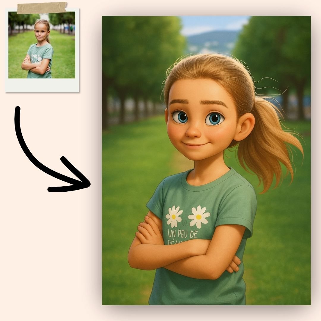 Un portrait unique, fidèle à vos expressionsChaque illustration est créée à partir de votre photo réelle. Nous prenons soin de préserver les expressions du visage, les sourires, les regards et les petits détails qui rendent chaque personne unique. Il vous suffit d’envoyer une photo nette, et nous nous chargeons de transformer votre portrait en une œuvre originale, drôle et touchante. Choisissez votre format : numérique ou impriméLors de votre commande, vous avez le choix entre deux formats : 📩 Format numérique (Digital HD) Recevez votre portrait en haute définition par email. Pratique et rapide, ce fichier numérique est prêt à être imprimé par vous-même. 📦 Format imprimé (A4) Nous imprimons votre portrait sur un papier photo de qualité au format A4 (21x29,7 cm), puis nous l'envoyons par La Poste directement à l'adresse de votre choix. Parfait pour encadrer ou offrir un souvenir tangible et durable 🎁 |